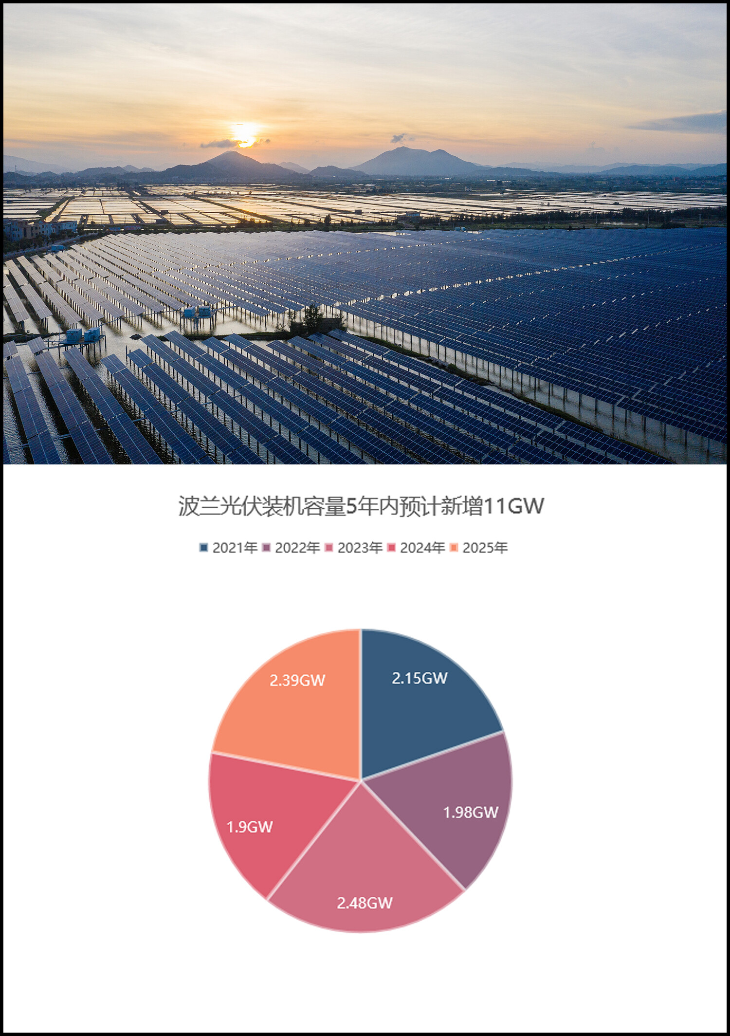 根据波兰研究机构Instytut Energetyki Odnawialnej的预测,波兰的光伏市场在未来五年内将保持持续的增长轨迹,每年新增装机容量超过2吉瓦。
