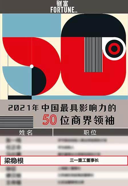 2021年3月17日,财富2021中国最具影响力的50位商界领袖榜单发布,三一重工董事长梁稳根先生获评。