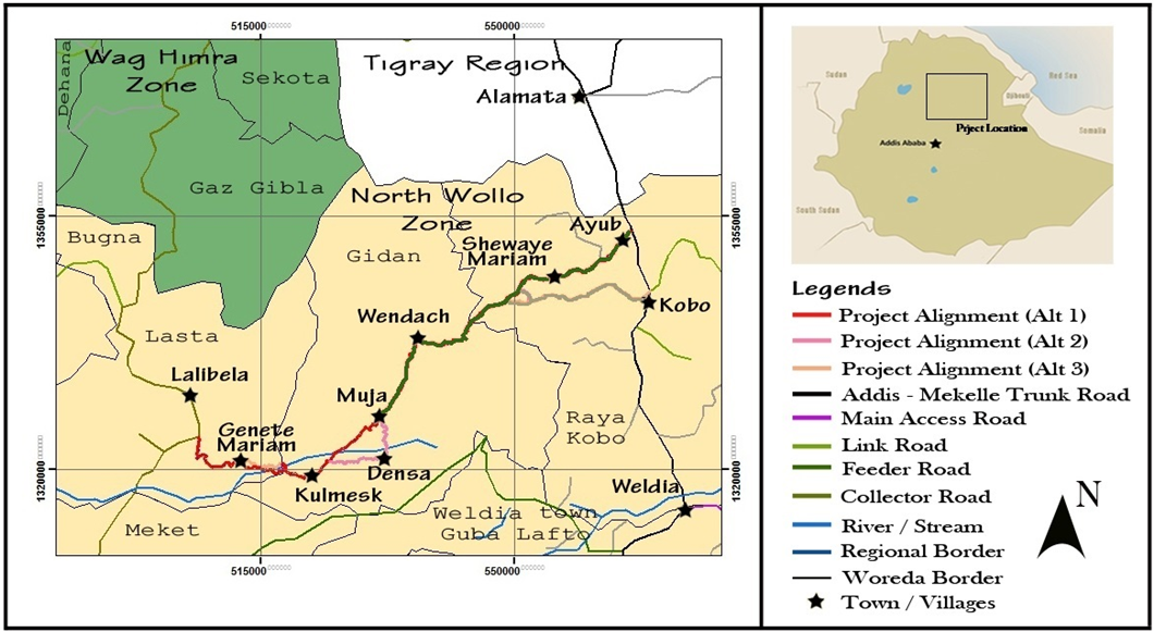 该项目距埃塞首都亚的斯亚贝巴以北约616公里,公路起于埃塞著名旅游城市拉利贝拉东南约10公里处,途经格内特、泽哈、库莫斯克等村镇,止于穆加镇,全长约45公里。