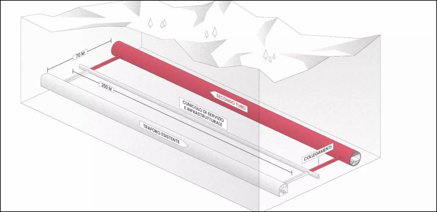 预计第二条隧道将在2032年开放,这将缓解第一条两车道管道的拥堵。第一条双线地铁于1980年开通,是巴塞尔至基亚索的A2公路的一部分。