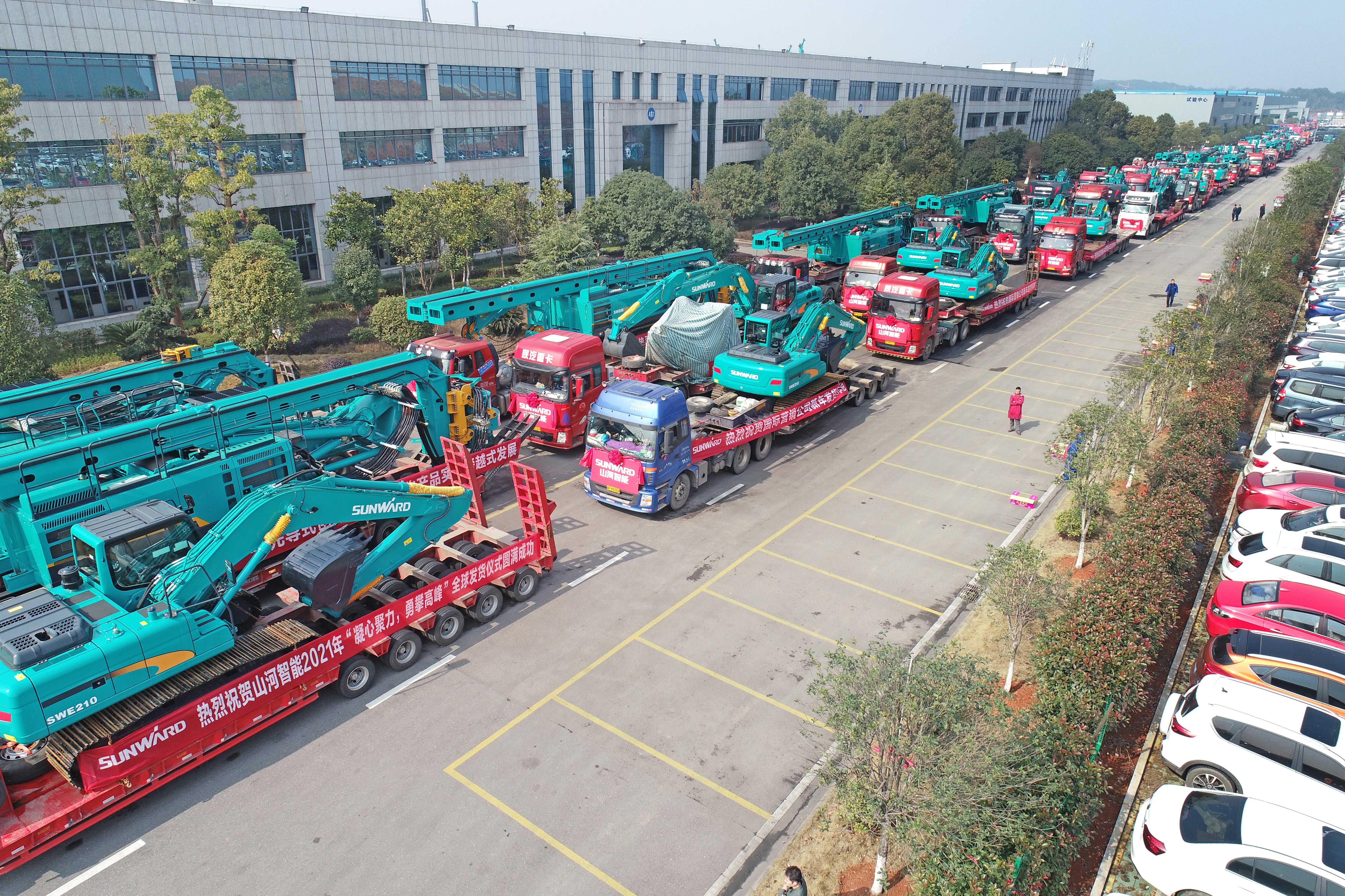 产能提升是山河智能业绩增长的关键词之一。2020年,山河智能全球总部搬迁到山河工业城,占地规模、自动化程度等相应提升,有效解决了产能受限的问题,全产品线的产能得到跨越式提升。