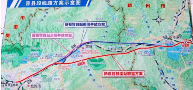The newly built Yulin-Cenxi (Guangxi-Guangdong provincial boundary) section of the Nanning-Shenzhen Railway (hereinafter referred to as the Yu-Cen Railway) leads from the Yulin North Station of the Nanning-Yulin section of the railway under construction. After G324, set up Rongxian South Station, then cross-border highway G241, pass Cenxi along the south side of Luozhan Railway, and set up Cenxi East Station to the provincial border. The line is about 111 kilometers long and has 3 stations. Among them, Yulin North Station is the station under construction, and Rongxian South Station and Cenxi East Station are newly built stations.