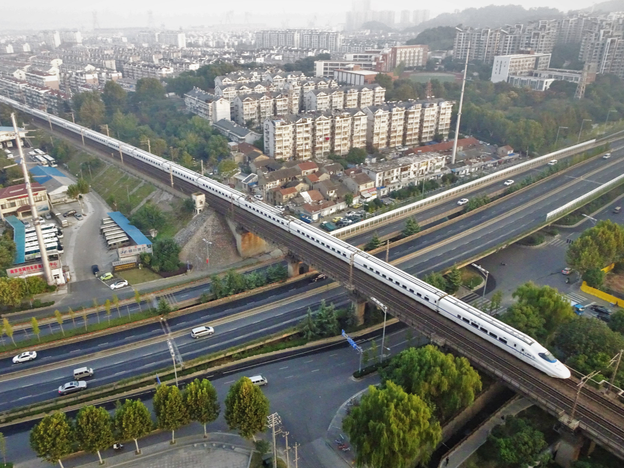 Main technical standard: high-speed railway. Number of positive lines: double lines. Design speed: 350 km/h. Maximum slope: 20‰ in general areas (30‰ in difficult areas). Minimum curve radius: 7000 meters in general areas (5500 meters in difficult areas). Effective length of arrival and departure line: 650 meters. Traction type: electric power. Train operation control mode: automatic control. Dispatching command mode: centralized dispatching.