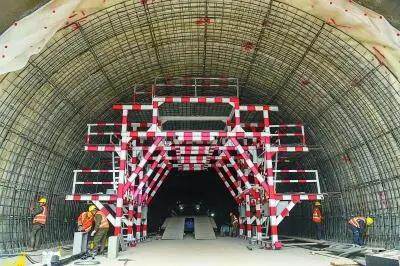 二新 采用“三洞四竖井”方案,其中,中导洞采用TBM法及DTSES工法施工,为国内高速公路隧 道施工首次使用;双主洞采用钻爆法,隧道主洞施工通过中导洞开辟辅助工作面实现长隧短打,此工 艺亦为国内高速公路隧道施工首次应用。