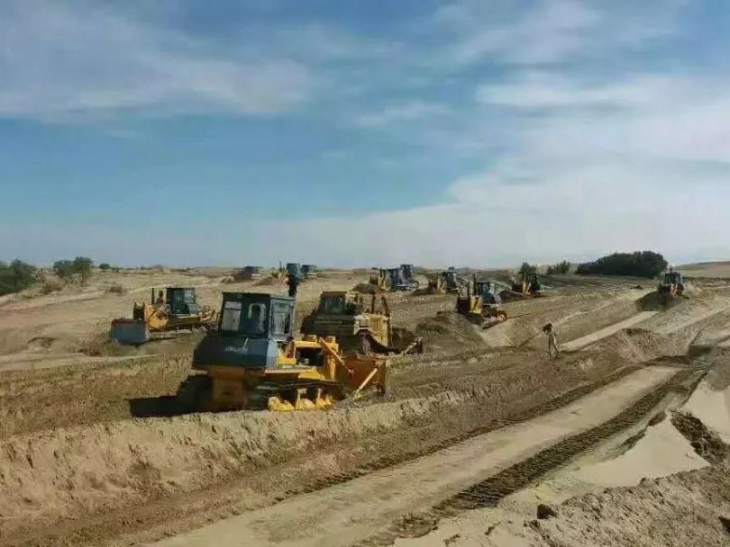 据介绍,项目施工方考虑到沙漠恶劣的施工环境,经过多方比较,最终选择山推推土机、装载机、平地机一体化产品机群作为项目施工的“主力军”,承担治沙平整土地、土方施工作业。山推也不辱使命,凭借出众的施工效率、稳定的产品性能、及时的售后服务保障,确保项目进度顺利进行。