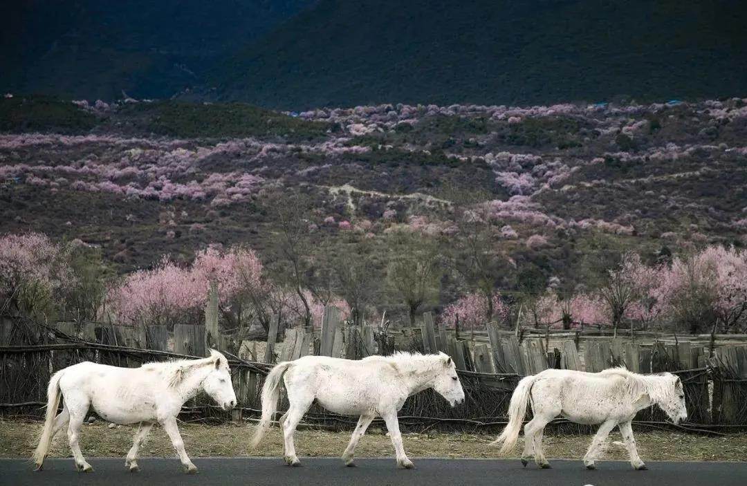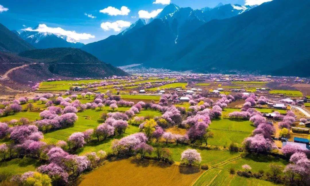 Here, the snow-capped mountains in the distance are connected to the peach forest, as if the peach forest is connected to the sky, making this place resemble the scenery of the south of the Yangtze River and the back garden of heaven.