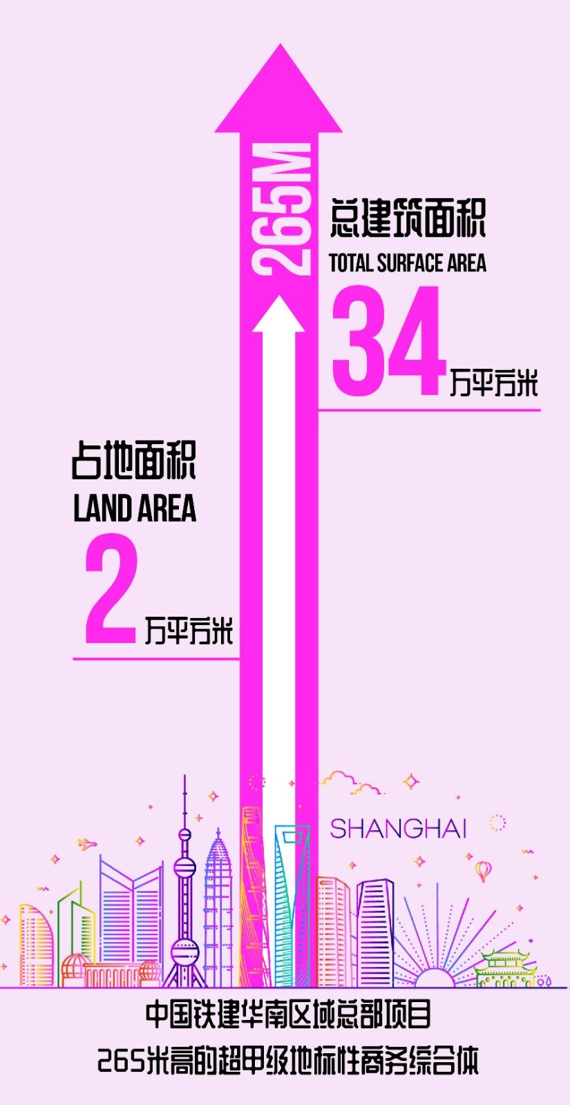 The China Railway Construction South China Regional Headquarters project is located in Panyu District, Guangzhou. It covers an area of about 20,000 square meters, with a total construction area of 340,000 square meters. It is planned to build a 265-meter-high commercial activity, business office, leisure and living space, and a sunken plaza. It is a super Grade A landmark business complex.