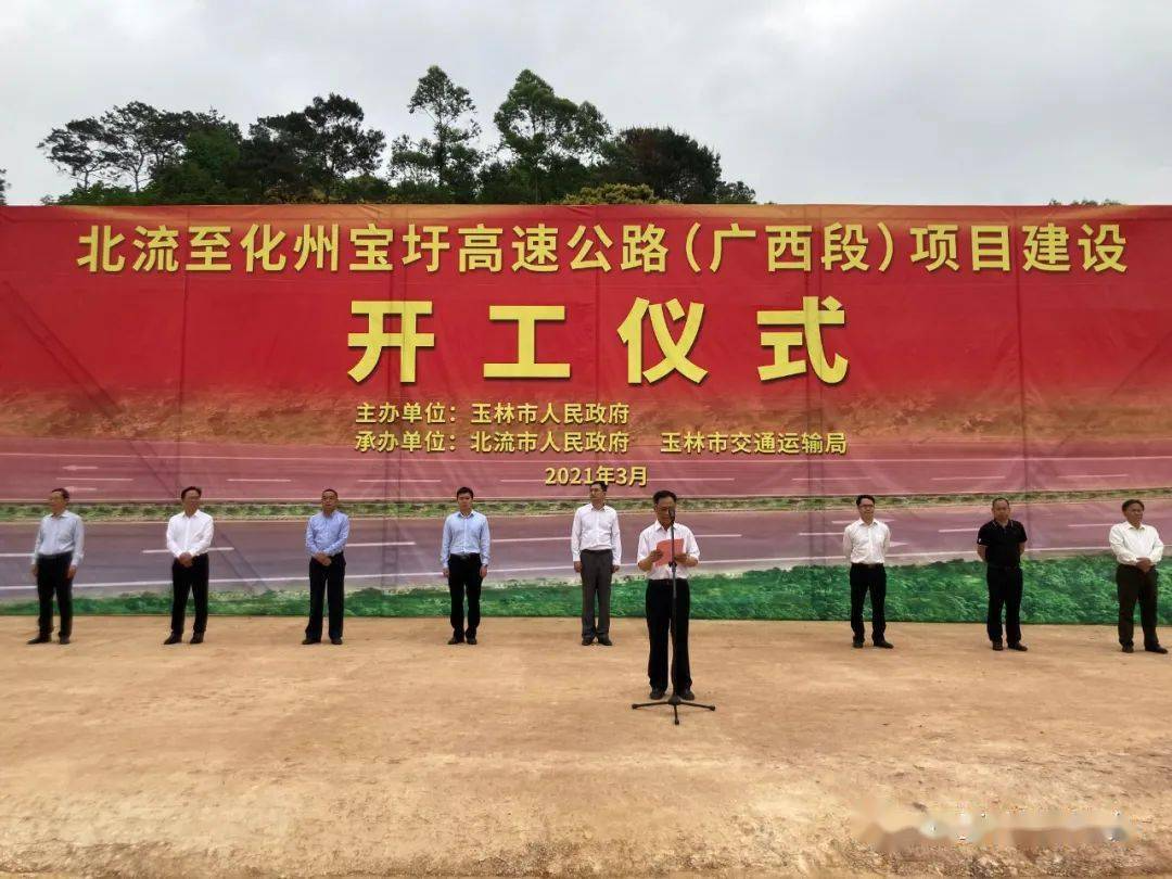 2021年3月30日上午,北流至化州宝圩高速公路(广西段)项目在北流市举行项目建设开工仪式。