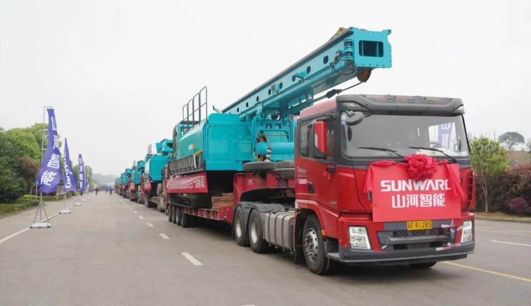 3月31日下午,山河智能基础装备月产销创新高暨发货仪式在山河工业城隆重举行。仪式现场,装载着山河智能基础装备的运输车整齐布阵,蓄势待发。