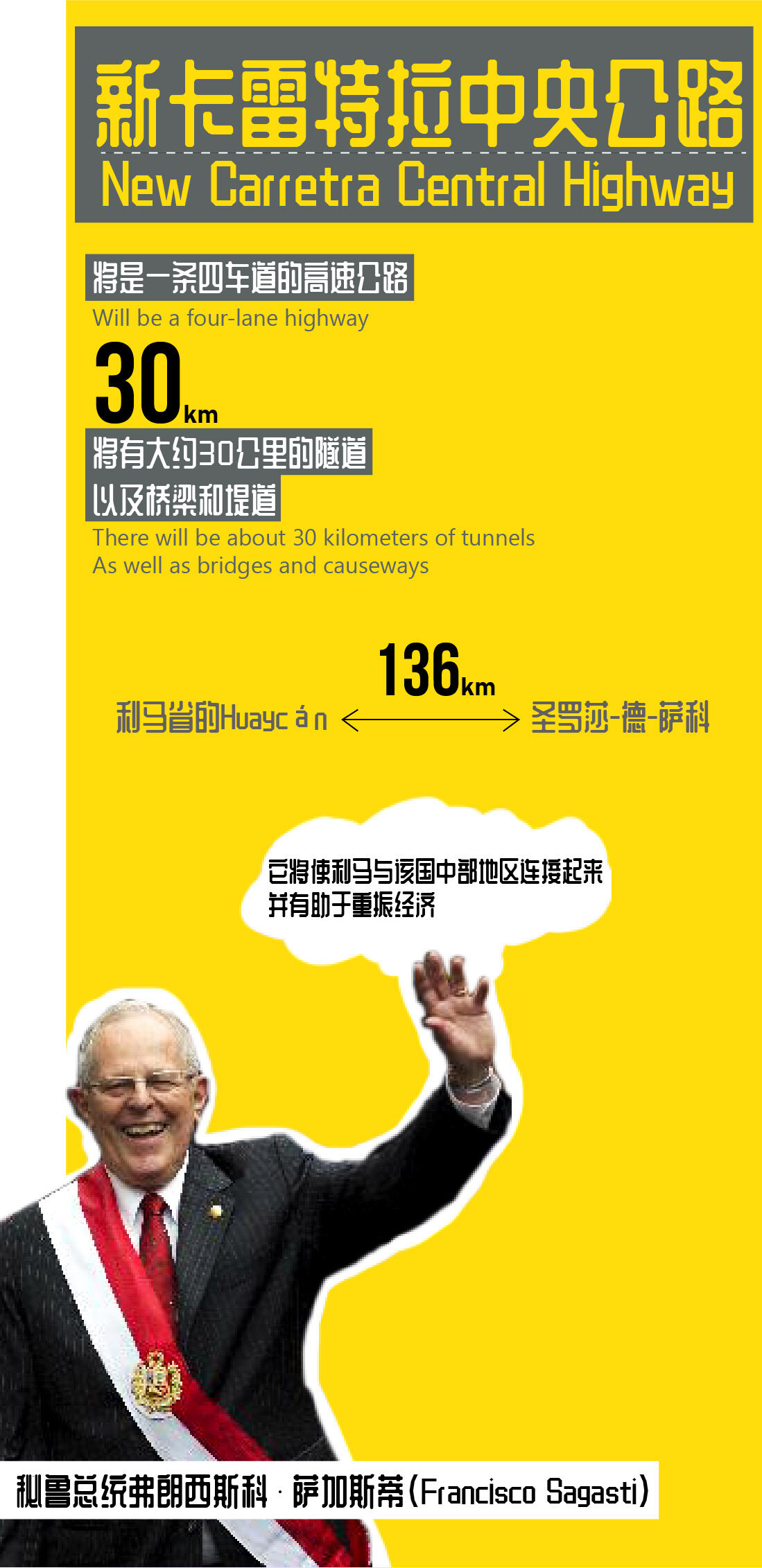 萨加斯蒂总统在推特评论中说:“本周,我在万卡约宣布以政府对政府模式建造#NuevaCarreteraCentral的计划,该计划已经计划了数十年,将把利马与该国中部地区连接起来,并有助于重振经济。”