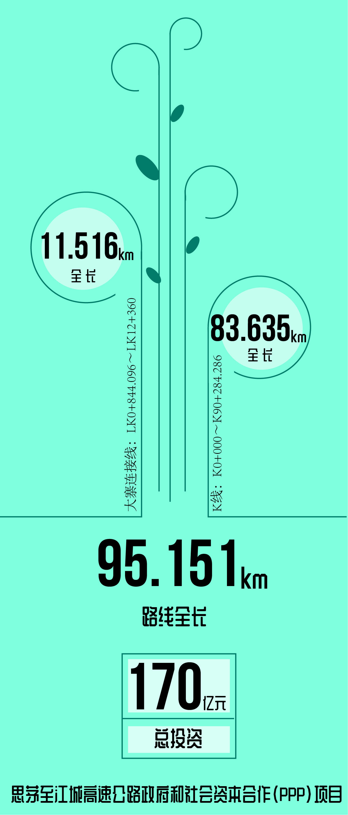 K线主要控制点:起点南岛河、老叶寨、石膏箐、菠萝、康平、整董、终点曼滩。全线主要控制性工程为:竜竜坝特长隧道(长6875米)大寨连接线:LK0+844.096~LK12+360路线起点位于老叶寨,通过老叶寨枢纽互通(K20+500)接主线,路线基本沿G227向西北布设,经新寨、勐旺寨、大石缸、板凳山后转向西南至终点大寨(LK12+360)接思江一级公路与旅游环线平交口,路线全长11.516公里,本项目推荐线全长95.151公里,预计总投资约170亿元。