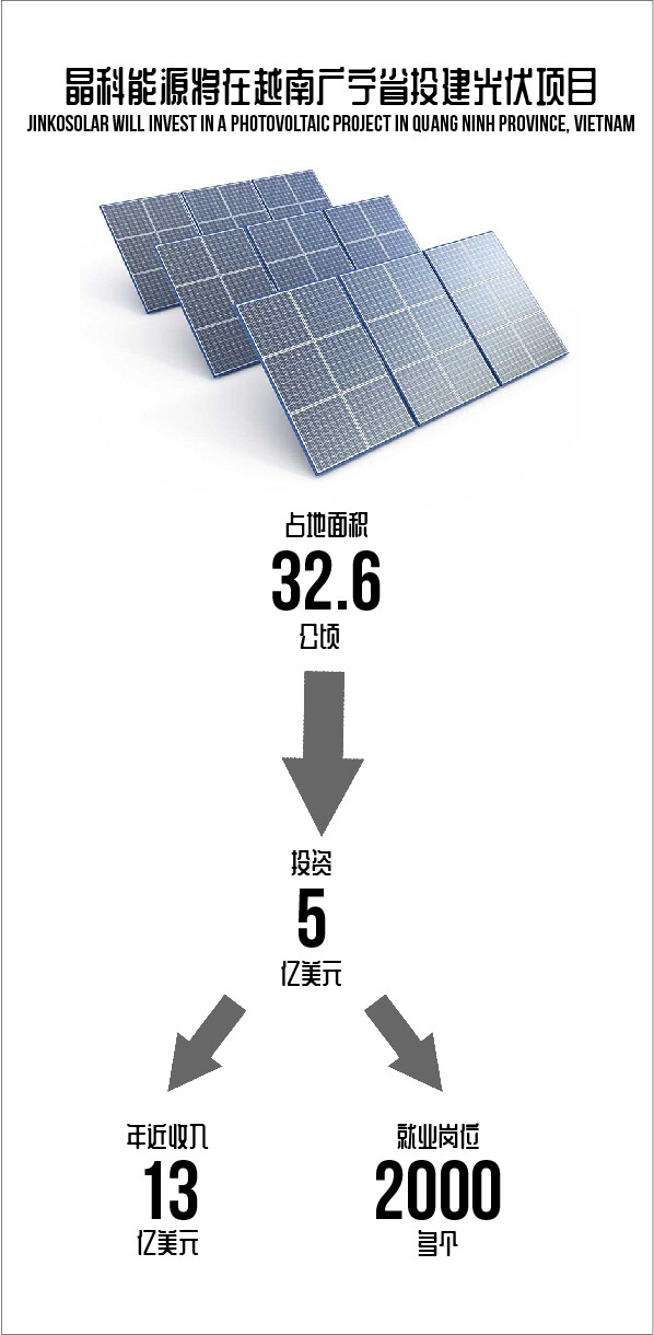2021年3月31日,晶科能源旗下香港晶科太阳能科技有限公司已获得许可,要在越南北部沿海的广宁省投资5亿美元的光伏项目。