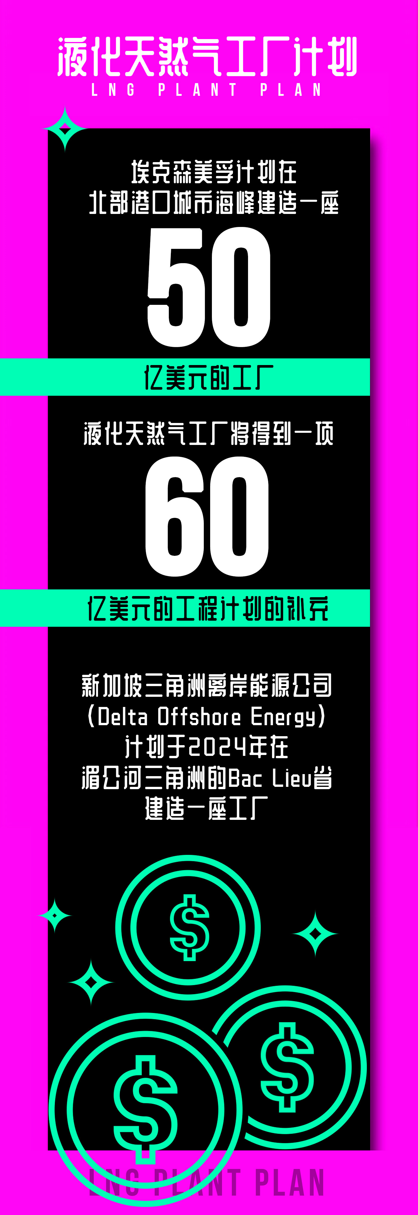 隆安是越南正在规划的一系列液化天然气工厂中的最新一家。报告提到,新加坡三角洲离岸能源公司(Delta Offshore Energy)计划于2024年在湄公河三角洲的Bac Lieu省建造一座工厂,埃克森美孚(Exxon Mobil)计划在北部港口城市海峰(Haiphong)建造一座50亿美元的工厂。