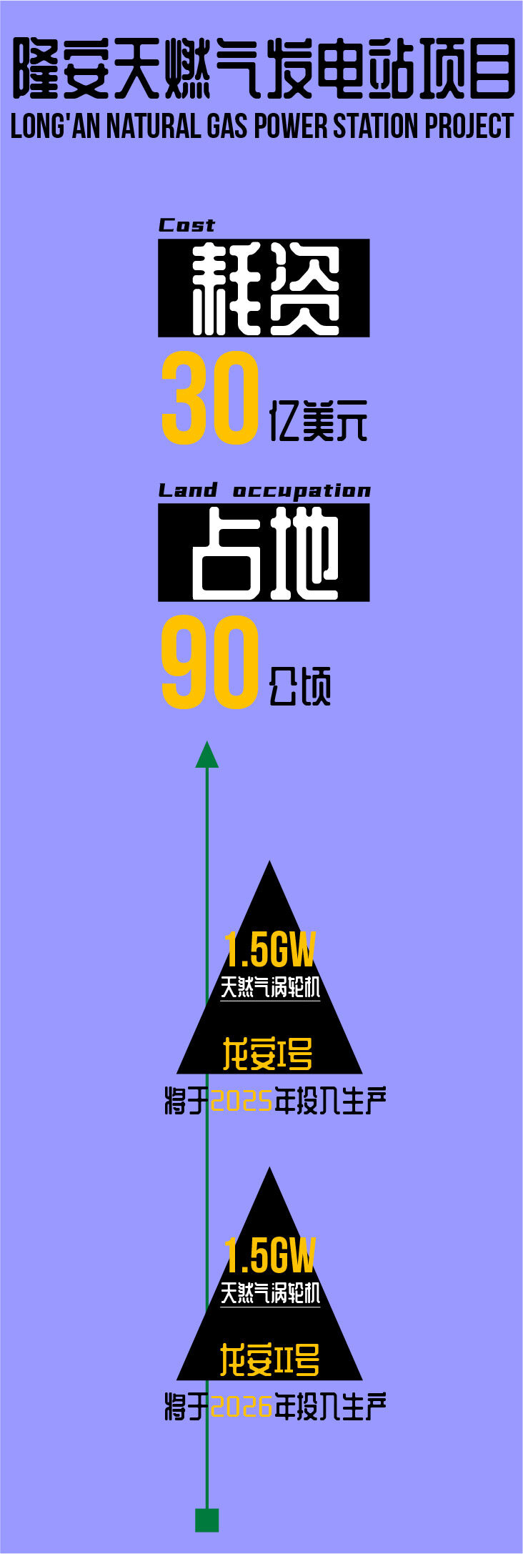 隆安I号和隆安II号将拥有两个1.5GW的天然气涡轮机,使用液化天然气运行。这些工厂原本计划用作燃煤炉,但是在越南政府决定偏爱较低碳能源之后,这些工厂就被取消了。越南仍然有许多大型燃煤电厂的计划,但近几个月来,这些计划引起了国际社会的强烈批评。
