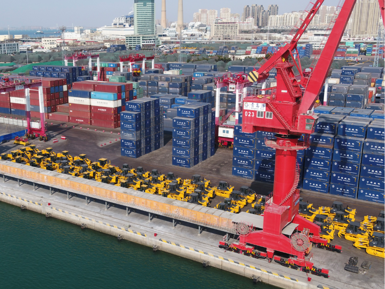 今年3月份,山推百余台全系列成套设备“集结”青岛港,蔚为壮观。这些产品漂洋过海,奔赴“一带一路”沿线重点国家,助力当地基础建设。“这批成套设备总价值6500余万元,涵盖了推土机、装载机、压路机、平地机等产品及配件,将为客户提供全套的工程施工设备解决方案。”据山推股份相关业务人员介绍,受疫情影响,企业不断探索新的销售模式,果断调整海外渠道布局,以市场需求为导向,通过产品线补充、产品提升和质量改进等措施提升市场竞争力。以此次发运为例,山推主动探索班轮新路径,充分利用山东港口优势,采用滚装班轮集中装运设备,直抵目的国港口,实现了从工厂到客户的“门口—门口”直线运输,大大降低了物流成本,提高了运输效率,有效缓解疫情造成的运力不足困境。