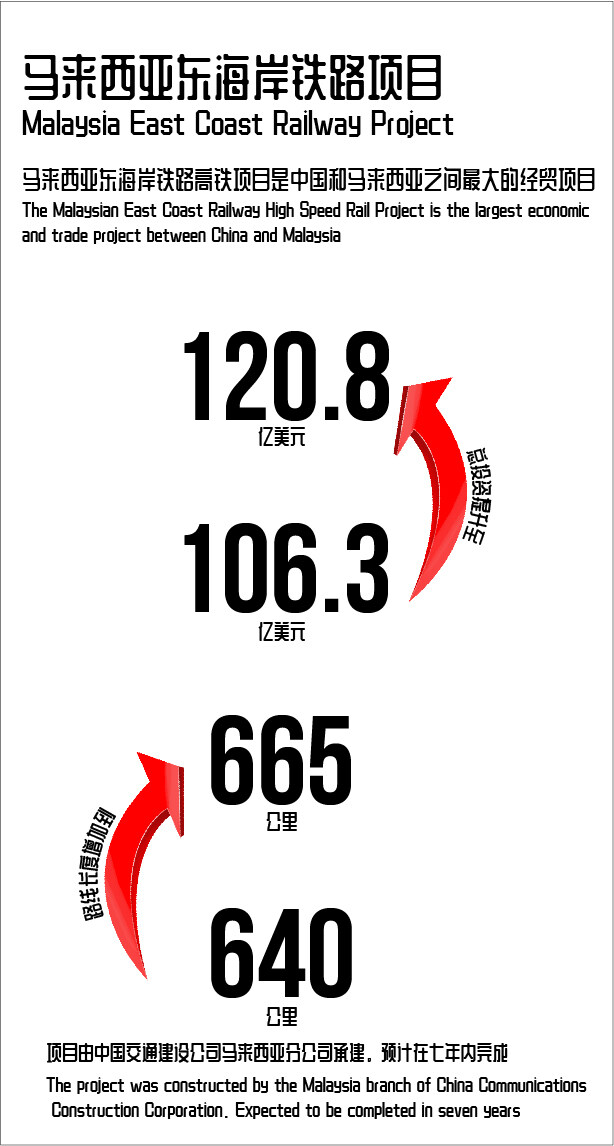 由于相关费用高昂,东海岸铁路的建筑工程于2018年暂停。马来西亚政府随后签署了新协议,从根本上缩减了项目规模,并将成本降低了三分之一,至106.3亿美元。除了调整项目成本外,最新修订版还将路线长度从640公里增加到665公里。