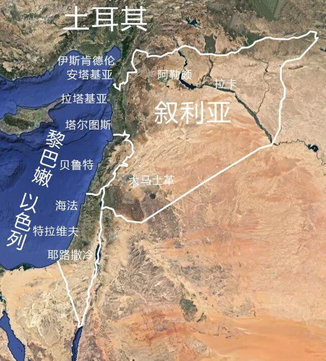 地处著名的西亚新月地带,今天位于该地区的国家为:叙利亚、黎巴嫩、约旦、以色列、巴勒斯坦。