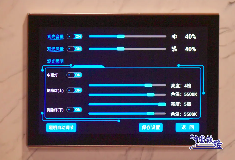 复兴号智能动车组车厢内的服务设施进行了智能化升级,进入隧道时,列车可智能控制车内压力,提前调节灯光、车窗颜色等。