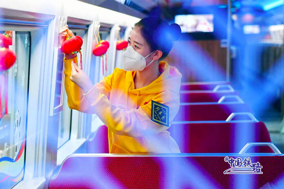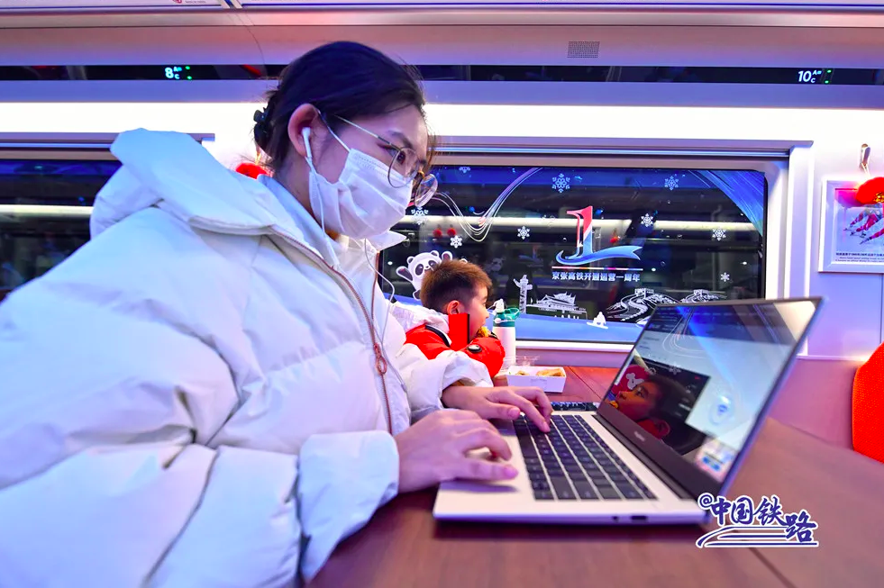 Blue lights, white snowflakes, gorgeous and dynamic car window stickers... The Fuxing Intelligent EMU, which served on the Beijing-Zhangjiakou high-speed railway, integrates Winter Olympic elements, sports spirit and railway culture. Editor/Wang Jiangwen