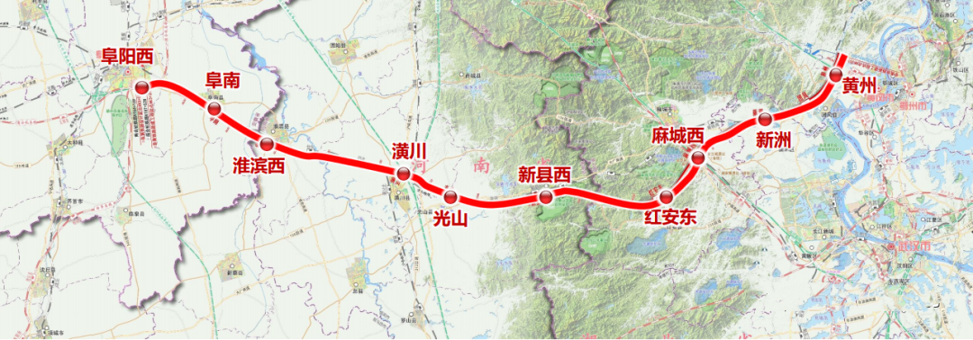 3、京港台高铁阜阳至黄冈(九江)段:新建线路长约324公里,其中河南省境内线路长132公里,设计时速350公里。