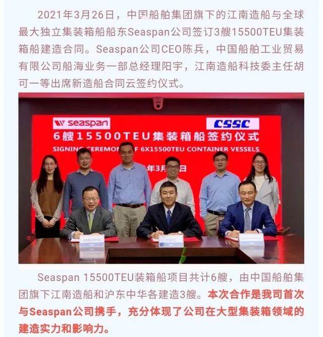 与此同时,中国船舶集团(中国船舶控股股东)在其官网发布消息称,集团旗下大连船舶重工集团有限公司(下称“大船重工”,中国重工全资子公司)和广船国际成功承接13艘16000TEU集装箱船的订单,总金额超百亿元,是中国船舶集团承接的单笔金额最大的集装箱船订单。