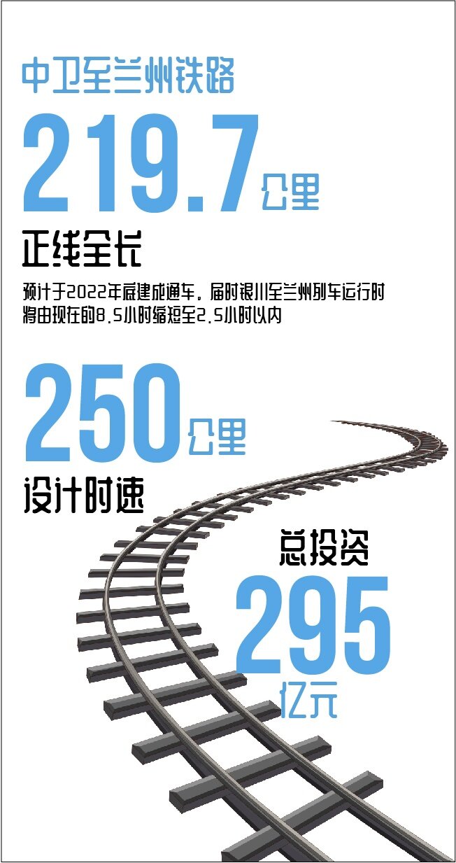 该项目估算总投资295亿元,其中甘肃省境内投资253亿元。全线设计时速250公里/小时,计划工期5年,预计于2022年底建成通车。届时银川至兰州列车运行时间将由现在的8.5小时缩短至2.5小时以内。
