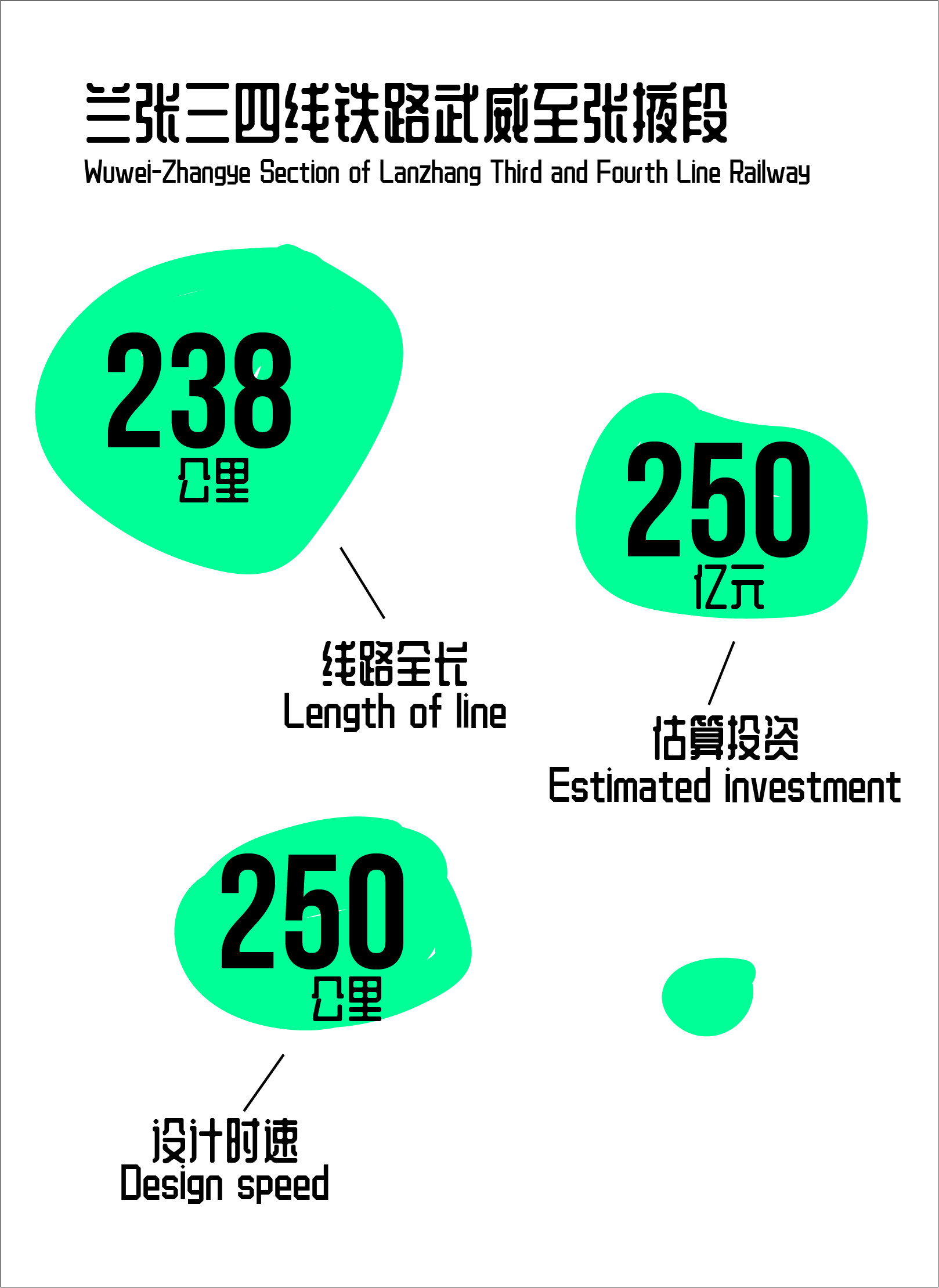 线路全长约238公里,从新建武威东站经武威市、金昌市,越芨岭经山丹县至张掖市,引入兰新第二双线张掖西客运站。设计速度250公里/小时。项目估算投资250亿元,其中资本金175亿元,甘肃省出资105亿元。