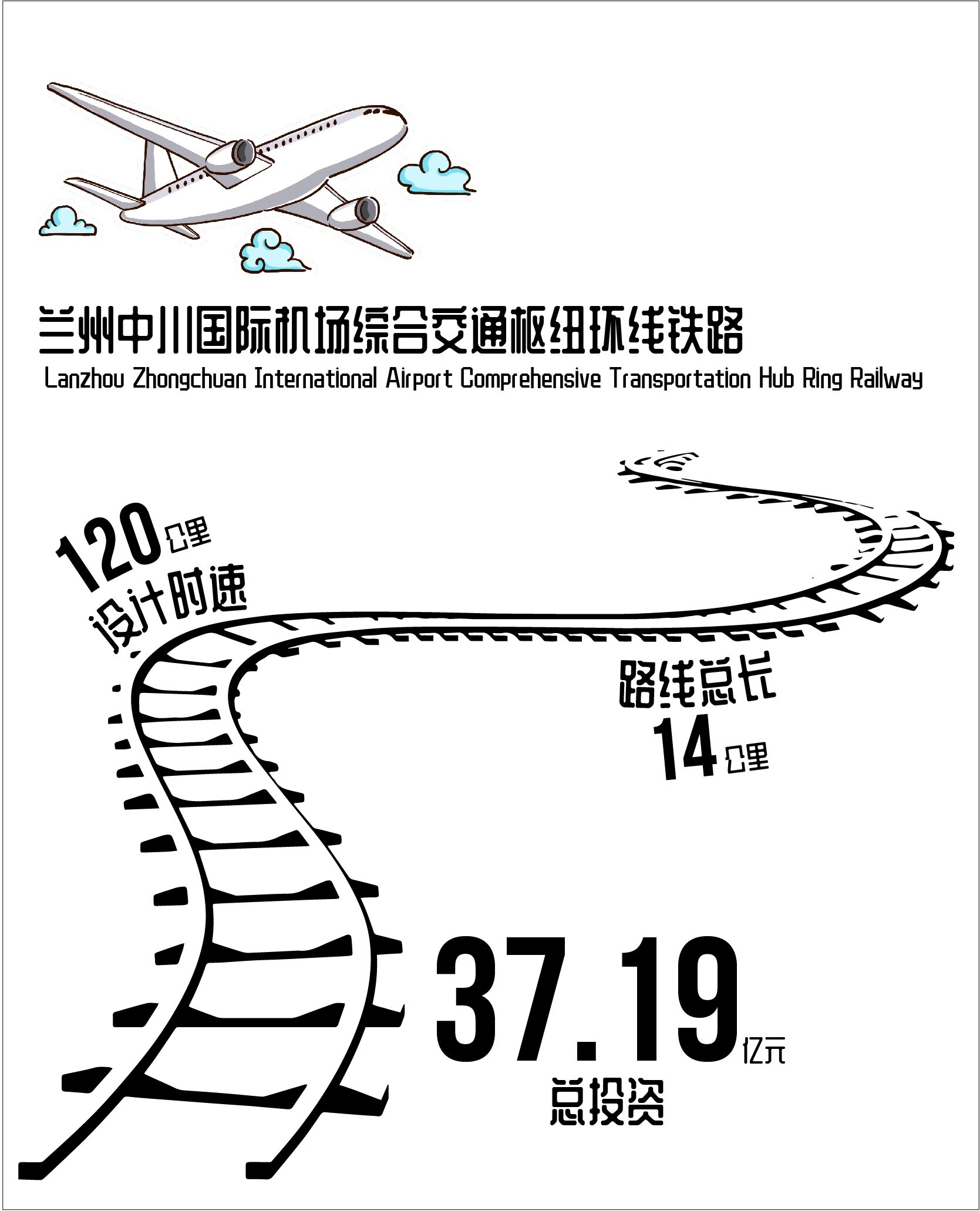 该项目是兰州中川国际机场综合交通枢纽的重要组成部分,位于兰州新区,线路总长14公里,按城际铁路、双线、120公里/小时标准设计,初步设计批复概算37.19亿元。