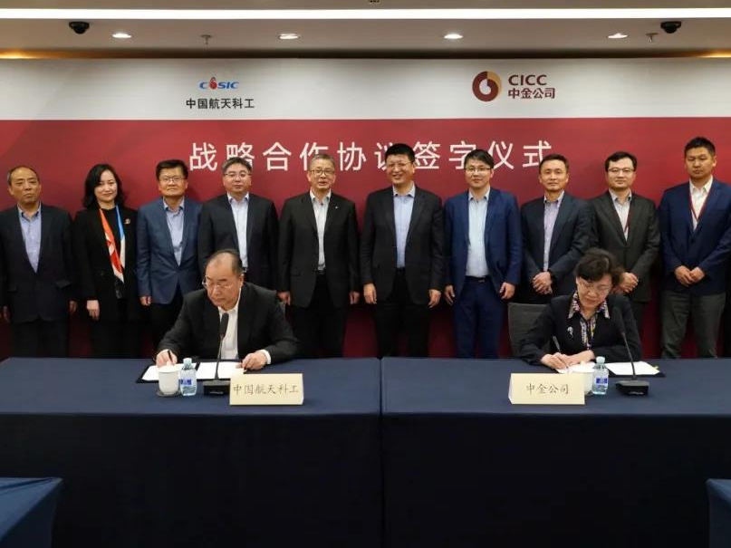 4月7日,中国航天科工集团有限公司与中国国际金融股份有限公司签署战略合作协议,进一步深化航天实业与金融领域的资源共享与专业合作。中国航天科工党组书记、董事长袁洁,党组成员、副总经理龚波;中金公司党委书记、首席执行官黄朝晖,投资银行业务委员会副主席白英姿;双方有关部门领导出席签约仪式。