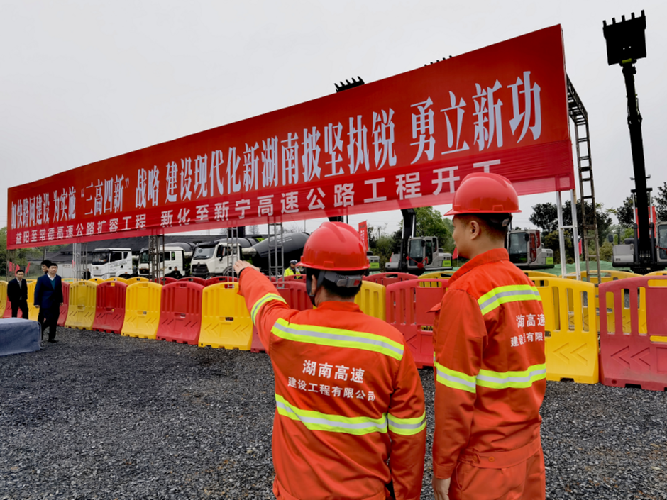 2021年4月8日上午,湖南省慰问交通项目建设项目建设者暨益阳至常德高速扩容工程、G59呼和浩特至北海高速公路新化至新宁高速公路工程开工建设动员大会在益阳市资阳区举行。