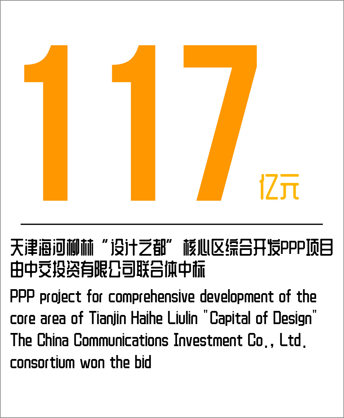 2021年4月8日,中交投资牵头与中交第一航务工程局等企业组成联合体中标天津海河柳林“设计之都”核心区综合开发PPP项目,总投资125亿元,中交二公局中标呼和浩特市新城区北二环大气污染整治暨环境综合治理项目,总投资37.97亿元。