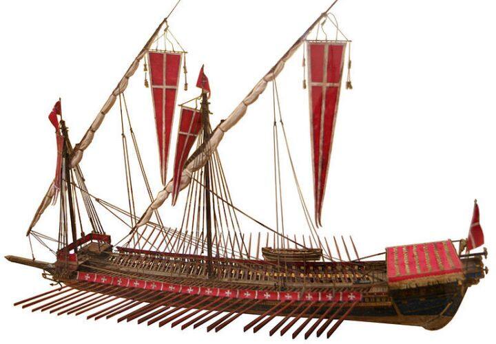 注意到船下面那排侧桨,除了用于划水产生动力以外,最主要的一个作用还用来控制方向。因为那时欧洲人还不知道用舵。稍后希腊人和罗马人造的也是这种类型的船。这附图准确来说应该是“wargalley”,是战船。和商船相比,最大差别就是战船桨数很多,而商船只在靠近船尾的地方左右各有一只侧桨,主要是控制方向。这种事情直到欧洲从中国学到了舵才有所改观。