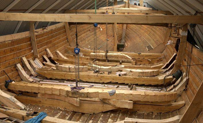欧洲人将船体的最宽处放在中部靠前的地方,这是仿鱼,而中国船体的最宽处却放在中部靠后,这是仿水鸟。后来的流体力学研究证明,中国人的做法更科学,因为一般船舶都不是像鱼那样在水里游,而是像水鸟(例如鸭和鹅)那样在水与空气两种介质之间划行的。认识到这一点以后,西方的船舶也像中国的船那样,把最宽处放在中部靠后的位置了。中国造船的这一理念应该算是领先。编辑/赵静