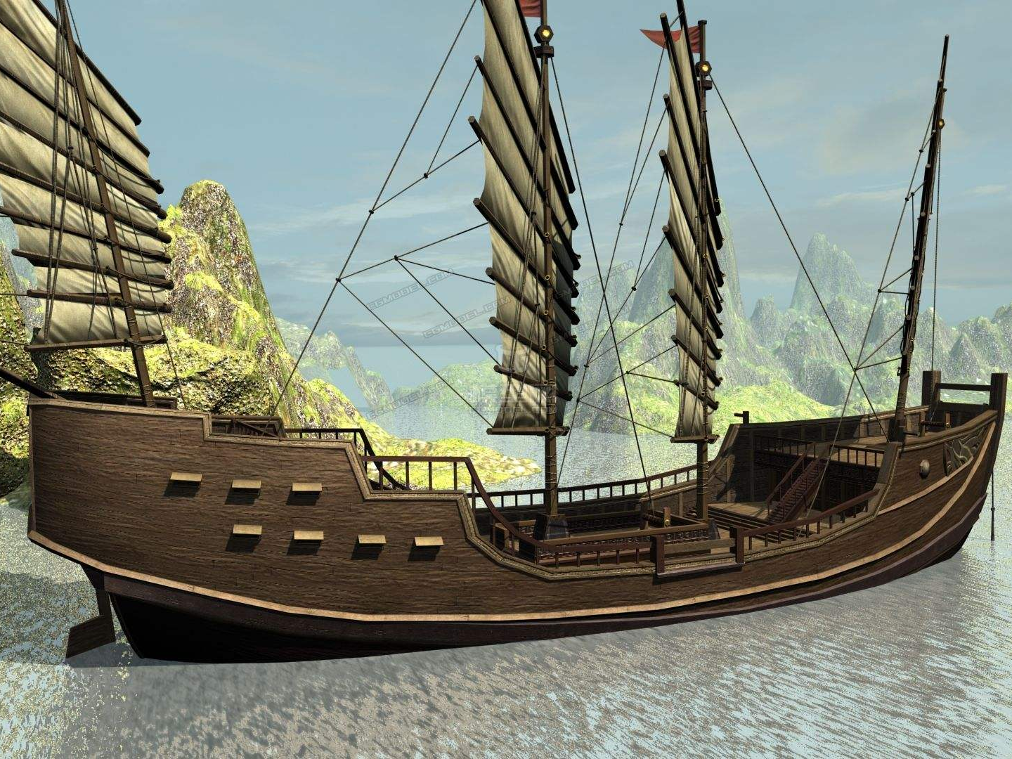 考古结果表明,中国早在五千年前就已经发明了舵,不过舵和纵帆组合在一起才是大杀器!所以让我们来看看纵帆:这是一种纵向安置的风帆。纵帆的优点是可以利用分力、合力原理,可以“船驶八面风”,只有“当头风”不可行驶。中国早在战国时代(公元前三世纪)就已经使用的“纵帆”,利用纵帆有一个必要条件,就是要能灵活调整船头方向。在中国,那是通过使用安置在船的“舵”来实现的。
