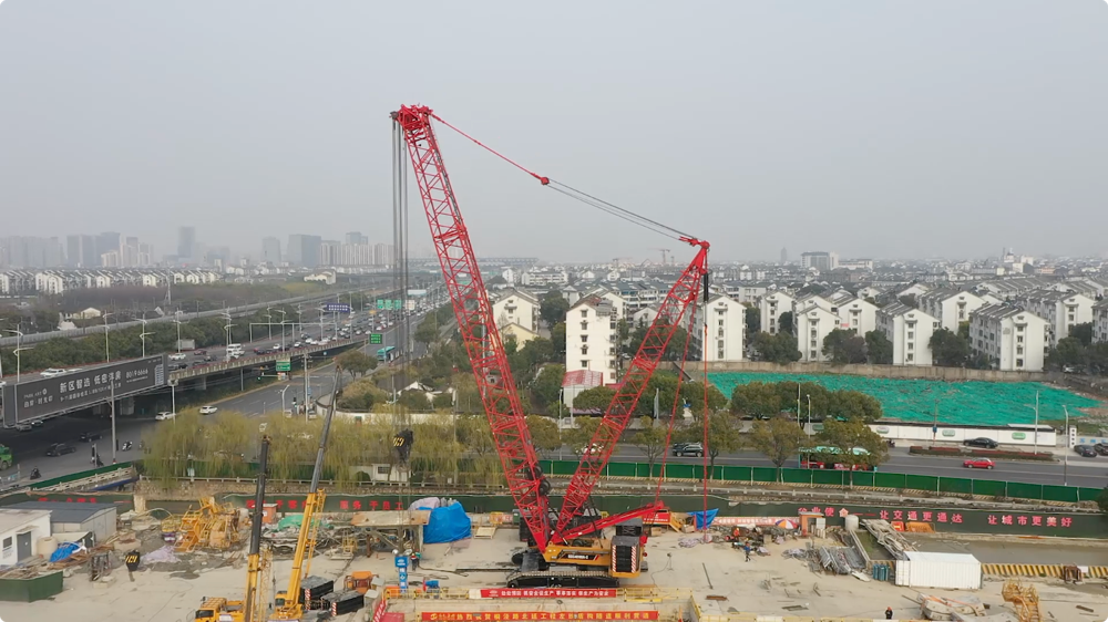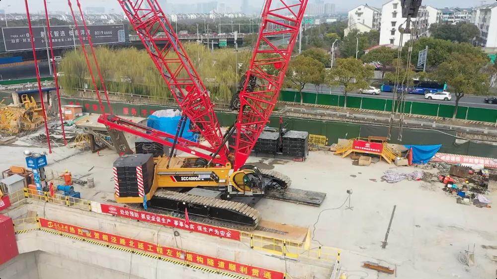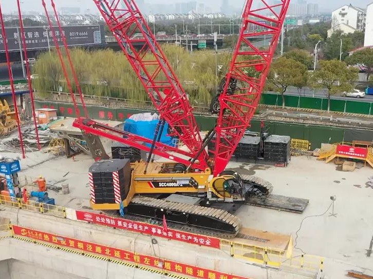 工程建设条件复杂,控制要求高,隧道形成后,要想将这台盾构机吊出也并非易事,这对盾构机的吊装设备提出了严苛的要求。驾驶三一的SCC4000A-2驾驶员尹师傅说:“这次使用的盾构机长达80米,总重量超过2000吨”。