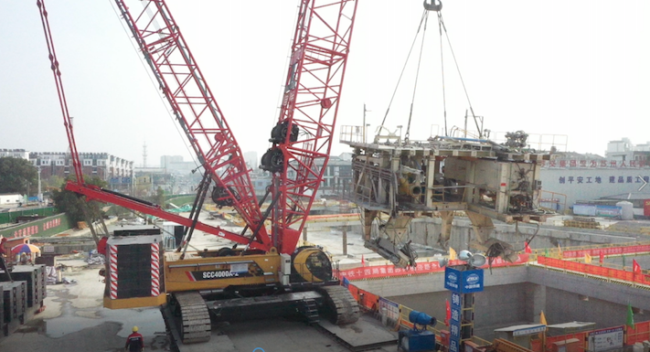 “出井时需要将盾构机先解体,因为井口宽度有限,290多吨的盾构刀盘也需要拆解吊出,台车部分需要分块吊出,其中部分结构重达130吨。这台车(SCC4000A-2)吊载性能很好,操作起来回转比较稳定,精确性也很好,在狭窄的施工环境里给了很大的安全保障。”