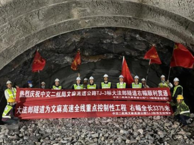 2021年4月11上午10时,经过三年奋战,由中交二航局承建的文麻(文山至麻栗坡)高速公路控制性工程大法郎隧道右幅实现贯通。
