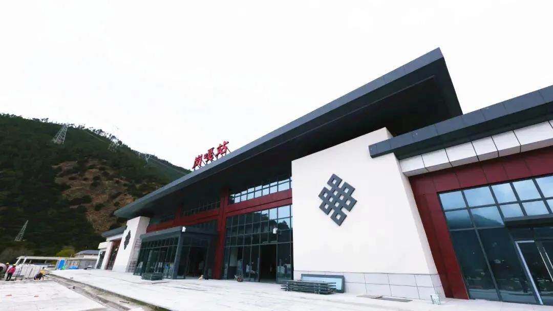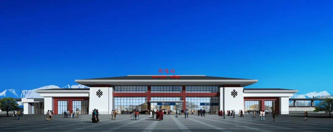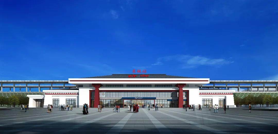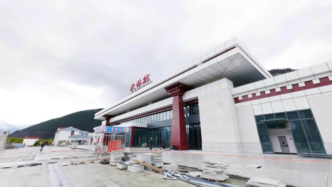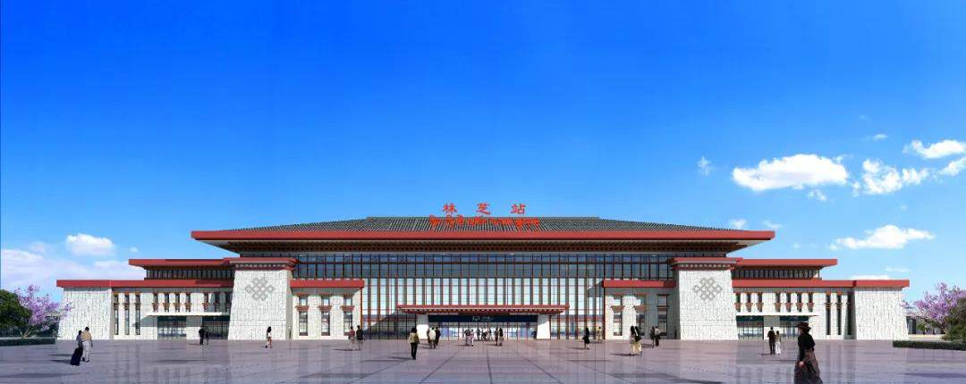 米林地处西藏东南部,是最美318国道景观的延伸。湿润的气候、2950米的海拔,米林站便坐落在这,全年不超过30摄氏度的云端桃花源中,站房总建筑面积1944.7平方米,站台规模为2台4线和下进下出的线侧下式站房。米林站屋面原设计为合成树脂波形瓦,考虑地处高原地区气候后改为强度高、防水性好琉璃瓦,经得起风吹日晒,颜色保持不变,站房正立面装饰装修独具风格,增设两根藏式红色装饰柱,站房整体造型视觉形象更加鲜明。