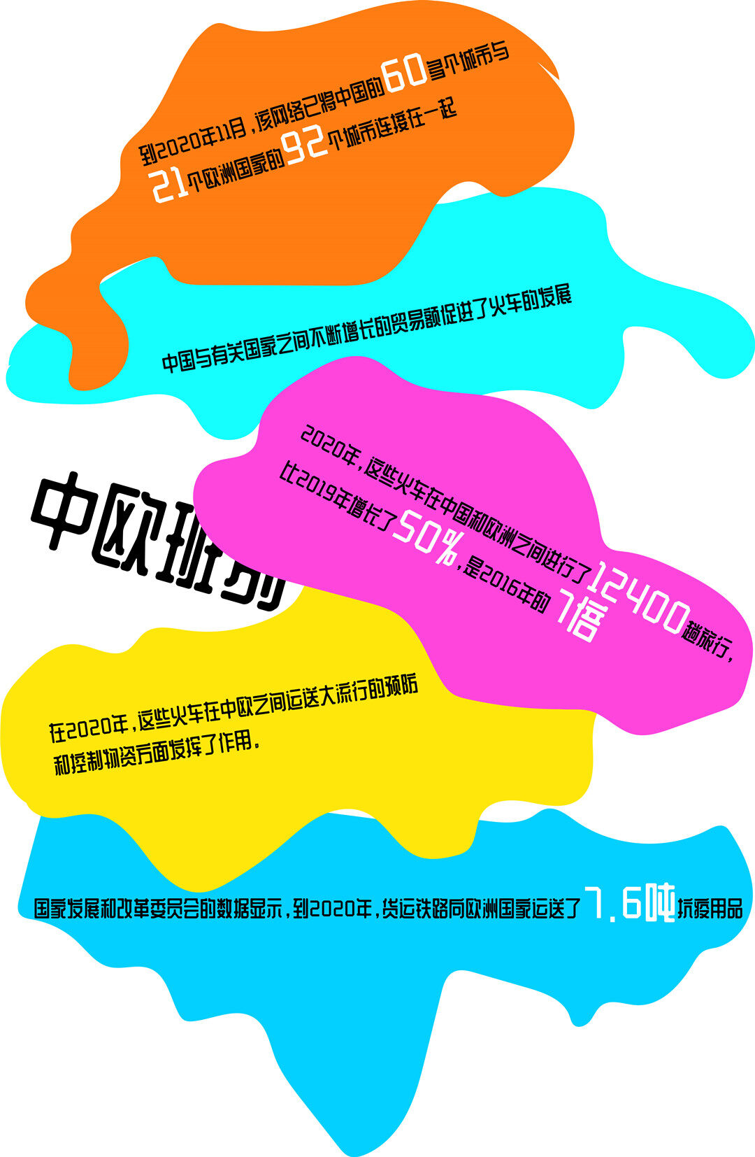 在2020年,这些火车在中欧之间运送大流行的预防和控制物资方面发挥了作用。国家发展和改革委员会的数据显示,到2020年,货运铁路向欧洲国家运送了7.6吨抗疫用品。2020年,这些火车在中国和欧洲之间进行了12400趟旅行,比2019年增长了50%,是2016年的7倍。