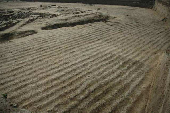 做成的田垄正如书中记载的高一尺,深一尺,每年轮换种植,头一年的垄沟,第二年经过培土成为垄背,所以称为“岁代处”,即一年一换。这种耕作方法如今依然在某些地区使用。另外,庭院内还出土了许多农具。主耕农具是铁质铸就的犁,犁头宽7寸(合汉代度制一尺),与垄宽正相符合。