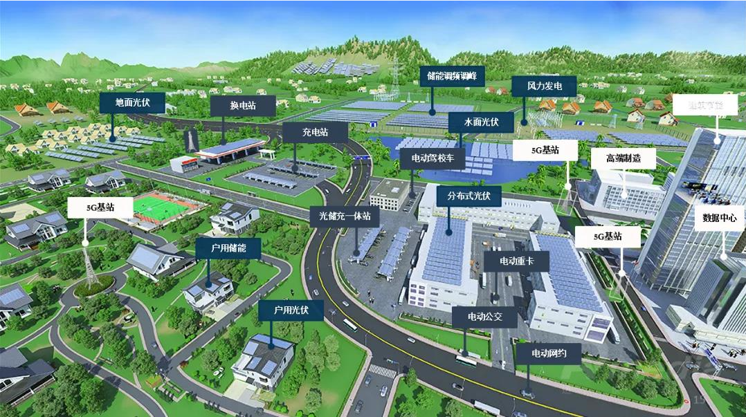 依托国和一号示范工程厂址优秀风光资源,在厂址边坡、综合楼屋顶、仓库屋顶、部分厂房屋顶、新能源科技馆屋顶、仿真国际交流中心各建筑子项屋顶布置分布式光伏,在综合楼、新能源科技馆、仿真国际交流中心、国和一号应急倒班宿舍停车场区域布置光伏车棚,在国和一号示范工程厂址海岸、仿真国际交流中心布置分布式风电。预留制氢和储能设备接口,构建“核风光氢储”多元化能源互补生态。