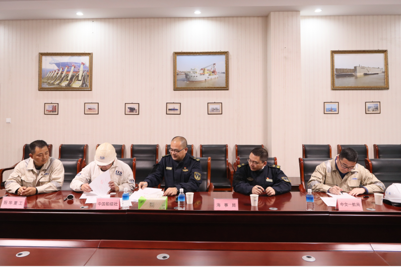 一公司、振华重工启东公司、中国船级社、南通海事局代表共同见证,并签署《四方见证》文件。随着项目进入坞内搭载阶段,船舶建造开启施工高峰模式,为2021年10月底前按期交船提供有力保障。