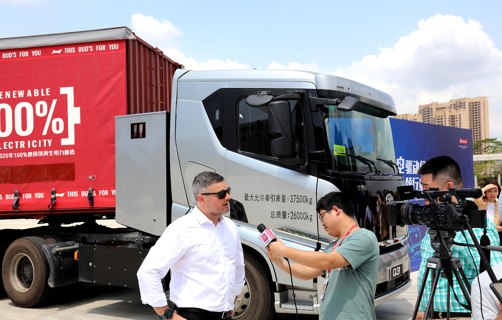 2021年4月14日,“百威电动重卡启用暨智慧储能项目庆祝活动”在百威佛山工厂隆重举行。首批采购的比亚迪全新纯电动牵引车Q3将陆续投运在佛山、唐山、武汉工厂及其周边地区的百威啤酒运输中,提供绿色节能、低碳高效的车辆服务。双方也将以首批车辆的交付使用为起点,逐步将新能源车辆使用扩展到百威在中国的8大厂区,力争达成百威2025年绿色物流碳减排目标,以绿色科技助推物流低碳发展。