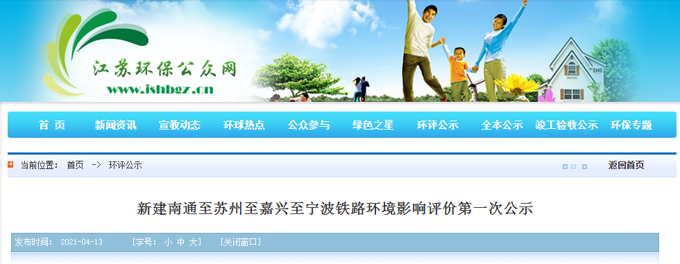 2021年4月13日,《新建南通至苏州至嘉兴至宁波铁路环境影响评价第一次公示》在江苏环保公众网发布。这意味着通苏嘉甬铁路进入了环评公示阶段,离全线开工不远啦!