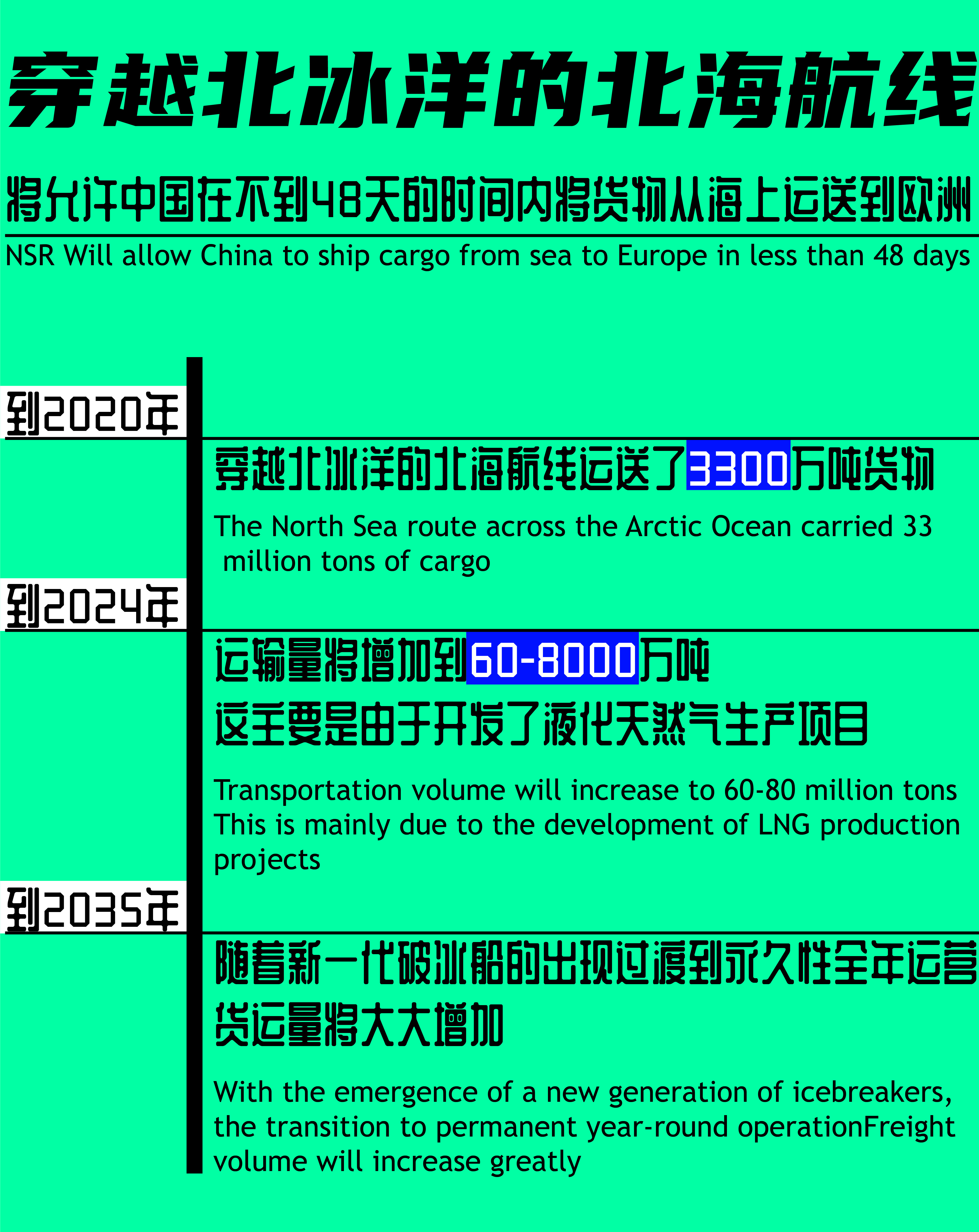 In the future, NSR will allow China to ship goods from the sea to Europe in less than 48 days, which is the average level of reaching Rotterdam through the Suez Canal from the northern port of China. In 2020, the Arctic LNG carrier Christophe de Magri arrived in South Korea from Norway without icebreaker escort. The entire journey lasted only 15 days. By 2020, NSR has shipped 33 million tons of cargo. By 2024, the transportation volume will increase to 600-80 million tons, mainly due to the development of LNG production projects. It is planned that by 2035, with the emergence of a new generation of icebreakers and the transition to permanent annual operations, the cargo volume will increase significantly.