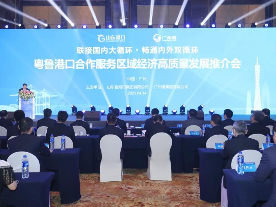 2021年4月14日,山东省港口集团联合广州港集团在广州举行“联接国内大循环 畅通内外双循环”粤鲁港口合作服务区域经济高质量发展推介会。这是山东港口整合之后首次以港口“大家庭”的形式在广州与广大客户集体见面,与广州港并肩协力为企业客户服务、搭桥,畅通国内沟通南北的海陆大通道,为南北两大经济圈高质量发展和“双循环”新发展格局贡献港口力量。