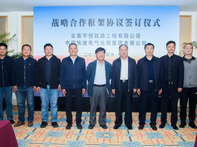 2021年4月13日,中国铁建电气化局集团有限公司与云南宇恒铁路工程有限公司(以下称宇恒公司)战略合作框架协议签订仪式在昆明举行。在集团公司党委副书记、总经理程庆海,中国铁路昆明局集团涉铁办专职副主任樊伟平的见证下,集团公司副总经理、西南区域指挥长罗世昌,宇恒公司党委书记、董事长李金分别代表双方在协议上签字。