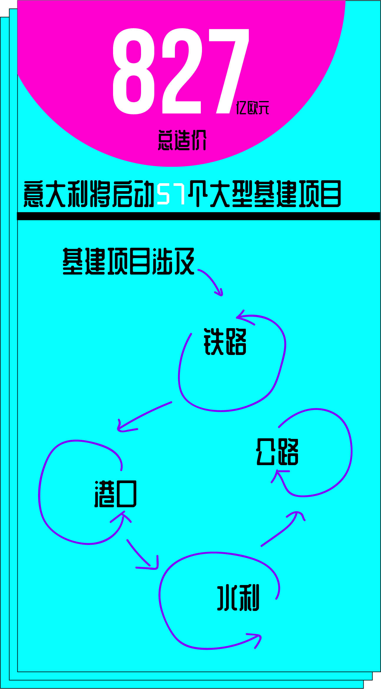 为提高意大利基础设施建设水平,推动经济发展。当地时间4月16日,意大利基础设施与可持续交通部发布公告称,意大利政府已任命29名专员负责启动57个大型基建项目。公告表示,基建项目涉及铁路、公路、港口、水利等工程,总造价达827亿欧元(约合6470亿元人民币)。