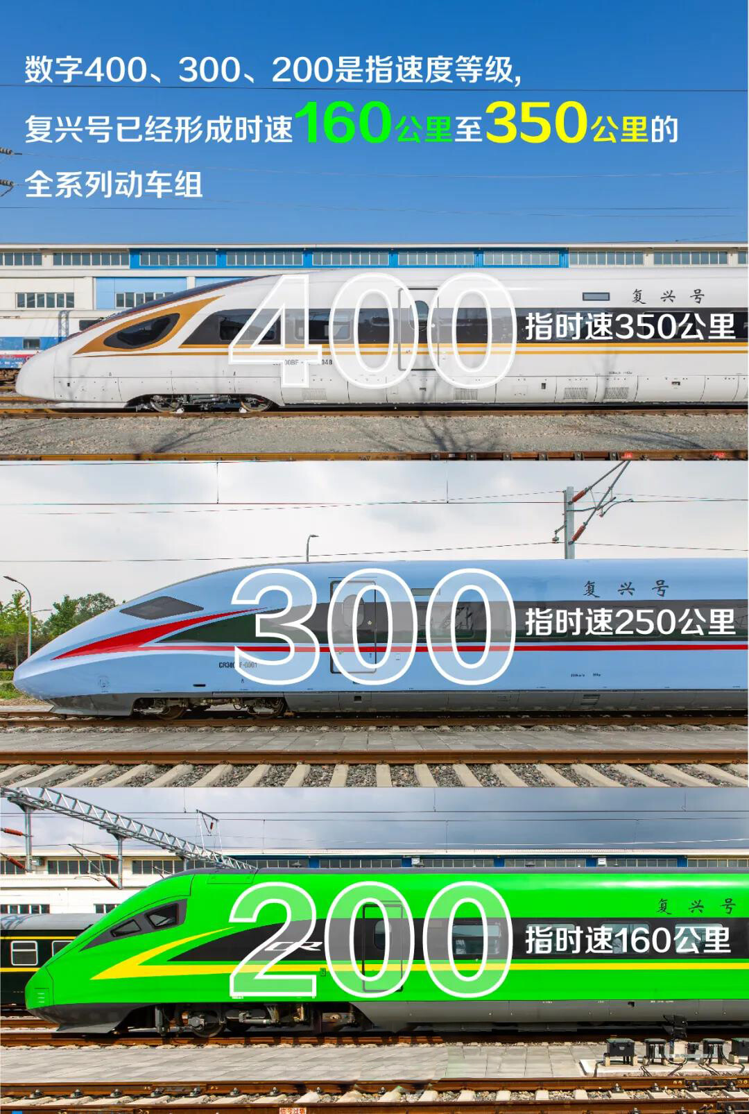 复兴号已经系列化,速度等级覆盖时速160公里至350公里,牵引动力包括动力分散式和动力集中式,编组包括8至17辆多种编组型式,可适应零下40摄氏度高寒地区等各种运用环境。