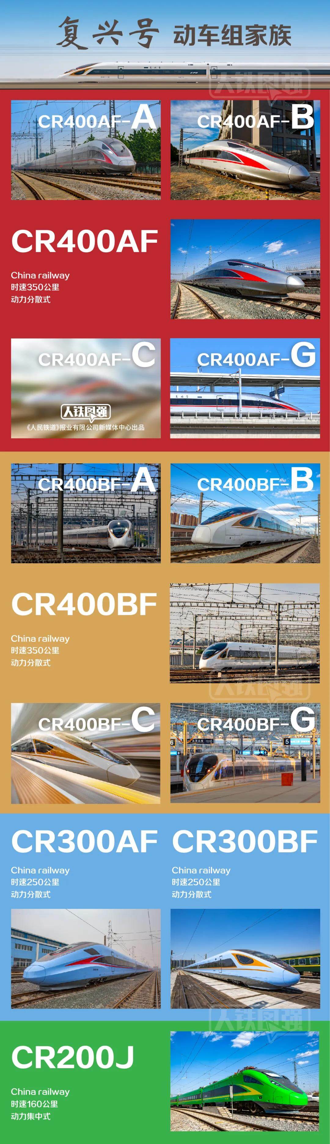 2018年后,CR400AF-A、CR400AF-B、CR400BF-A、CR400BF-B、CR400BF-G、CR200J6款车型先后投入高铁运营中。